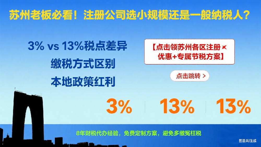• 在苏州注册公司的老板们常常纠结:刚起步该选小规模纳税人还是一般纳税人? 两者在税点、缴税方式、适用场景上差异明显,一旦选错可能多缴税、影响业务!作为深耕苏州财税市场 8 年的代办机构,今天结合本地政策和实操经验,手把手教你避开注册坑。一、小规模 VS 一般纳税人:4 大核心区别对比(附苏州实操数据)区分维度小规模纳税人一般纳税人···...